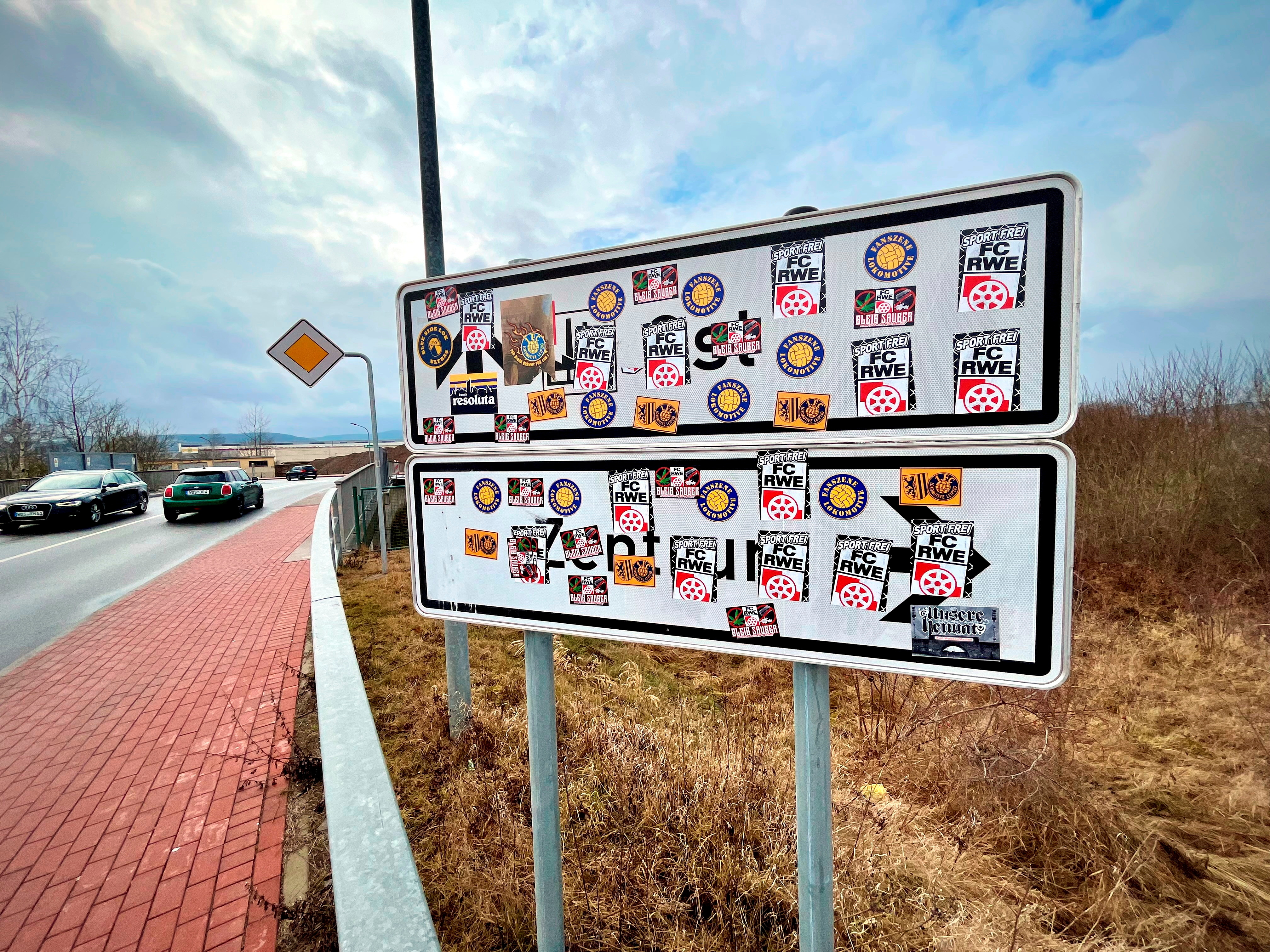 Leinefelde-Worbis. Immer wieder werden in Leinefelde-Worbis Verkehrszeichen, Ortseingangsschilder und andere Hinweisschilder mit Aufklebern verunstaltet.