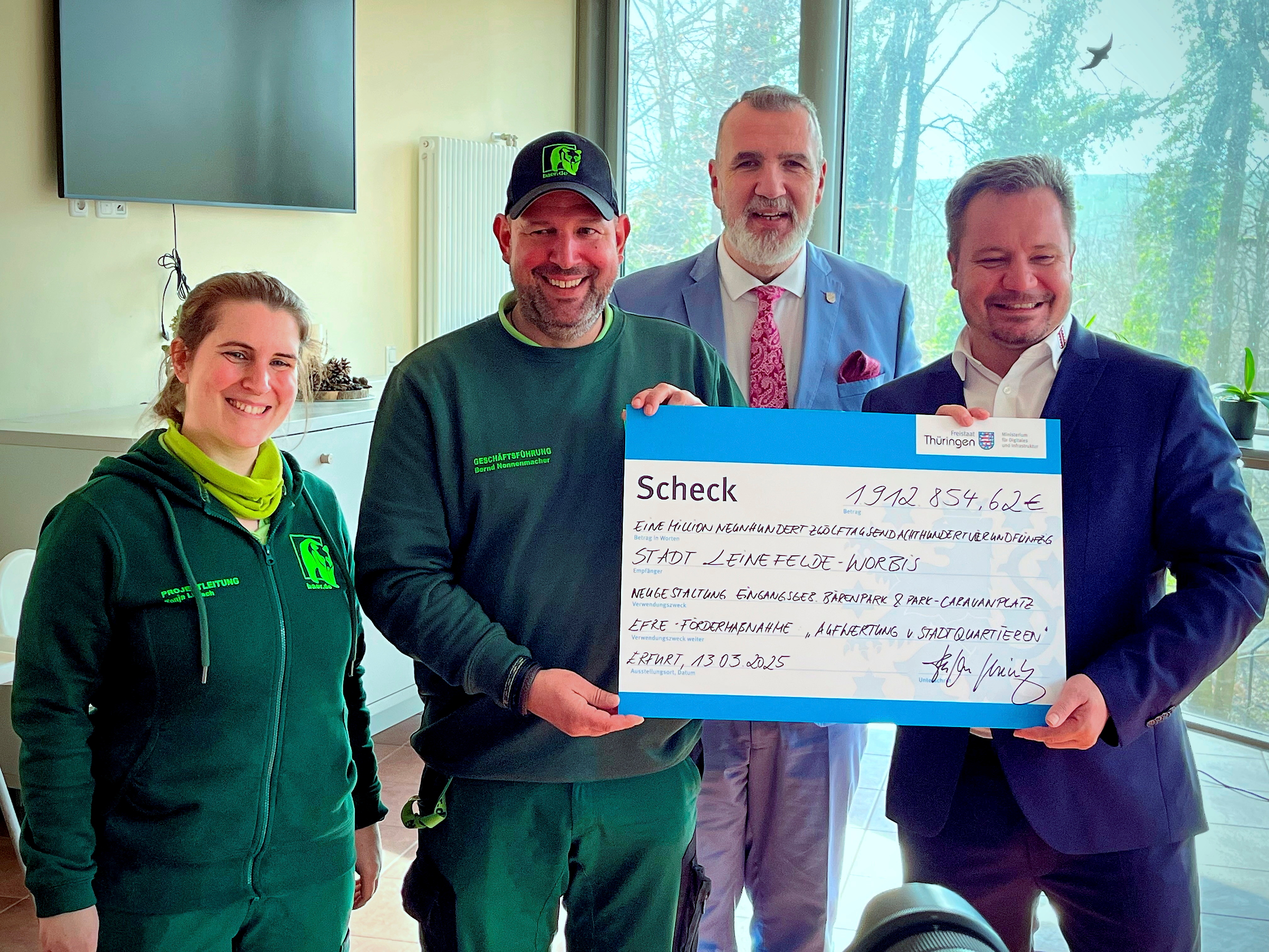 Worbis. Große Freude im Alternativen Bärenpark Worbis: Thüringens Minister für Infrastruktur und Landwirtschaft, Steffen Schütz (BSW), überreichte am vergangenen Donnerstag einen Förderbescheid an Bürgermeister Christian Zwingmann und das Team des Bärenparks um Geschäftsführer Bernd Nonnenmacher und …