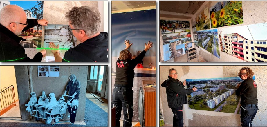 Aktuell bringen Mitarbeiter der Worbiser Werbeagentur Millers Marketing großformatige Bildtafeln für die Ausstellung zur jüngeren Geschichte Leinefeldes an. Die von der Stadtverwaltung vorbereitete Präsentation zeigt prägende Stationen der Stadtentwicklung und macht die Geschichte vor und nach der Wende während der Landesgartenschau anschaulich erlebbar.