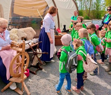 Lernen, ausprobieren, staunen: Das Grüne Klassenzimmer der Landesgartenschau Leinefelde-Worbis ist erfolgreich gestartet. Gestern fand auf dem Gelände der erste Kurs mit den Thüringer Landfrauen statt. Unter dem Motto „Vom Leine-Schaf zur Socke“ wurde eine alte Eichsfelder Tradition lebendig. Kinder und Jugendliche konnten anschaulich erleben, welchen Weg Schafwolle nimmt, bevor aus ihr ein fertiger Strumpf entsteht. Vom Rohmaterial über das Waschen und Kämmen bis zum Spinnen eines Fadens wurde regionale Handwerkskunst greifbar gemacht.