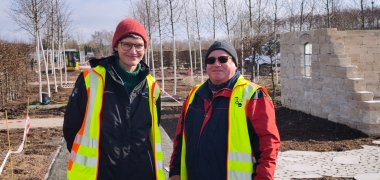Zwischen aufbrechenden Blumenzwiebeln und neu gepflanzten Gehölzen herrscht geschäftiges Treiben. Maschinen rollen über das Areal, Fachfirmen arbeiten parallel an unterschiedlichen Bereichen, Baufortschritt ist überall sichtbar. Davon konnten sich am Donnerstag auch Andreas Kenzler und Beate Riese, die beiden Verantwortlichen für den gärtnerischen Bereich der LGS 2026, überzeugen.