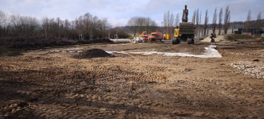 Auf dem künftigen Veranstaltungsplatz laufen die Arbeiten ebenfalls auf Hochtouren. Große Baumaschinen ebnen Flächen und schaffen die Grundlage für die spätere Bühne und Veranstaltungsinfrastruktur.