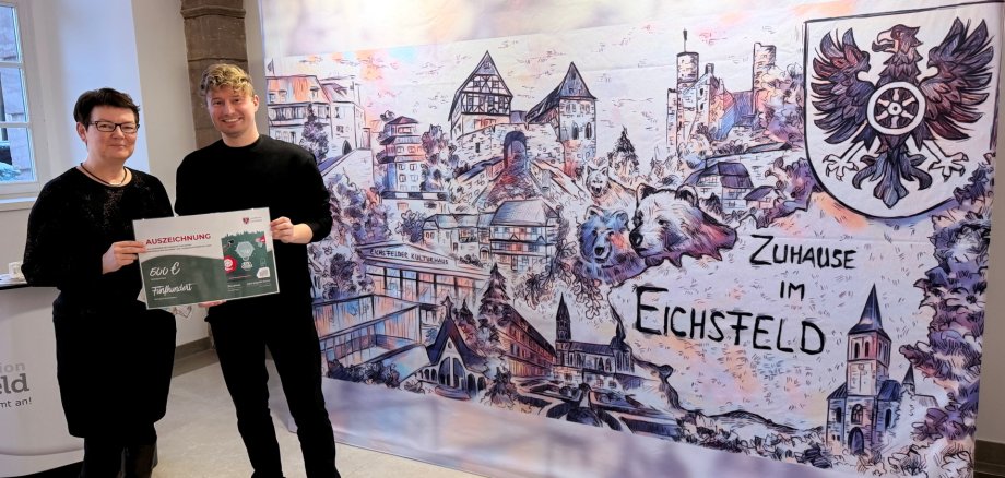 Landrätin Dr. Marion Frant begrüßte und würdigte den Gewinner im Rahmen der Preisverleihung mit den Worten: „Ich bin voller Freude, unserem Erstplatzierten gratulieren zu dürfen – seine Idee zum Eichsfeld-Eyecatcher zeigt eindrucksvoll, wie viel Kreativität, Engagement und Herzblut in unserer Region steckt. Sein Beitrag hat uns als Jury nicht nur überzeugt: Er hat uns begeistert. So begeistert, dass wir uns entschieden haben, nicht bis zur Landesgartenschau zu warten und das Motiv schon jetzt sichtbar zu machen.“